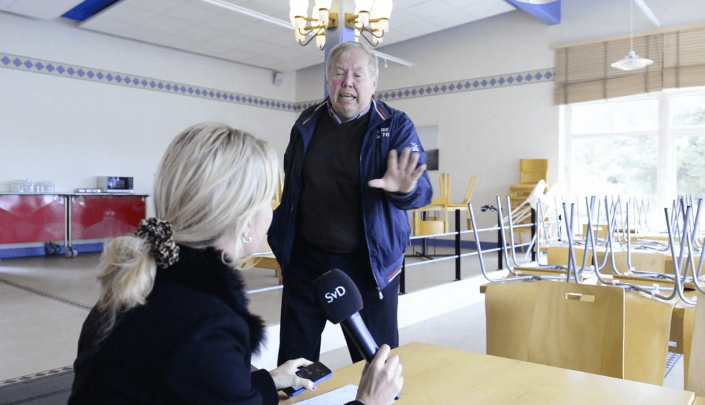 Bert Karlsson som driver bolaget Jokarjo, Sveriges största privata aktör på asylboenden, får frågan hur mycket inom verksamheten som går till vinst och blir då märkbart irriterad: "Ni är sanslösa, jag förstår inte hur dumma ni är", utbrister han till Svenska Dagbladets reporter Carolina Neurath.