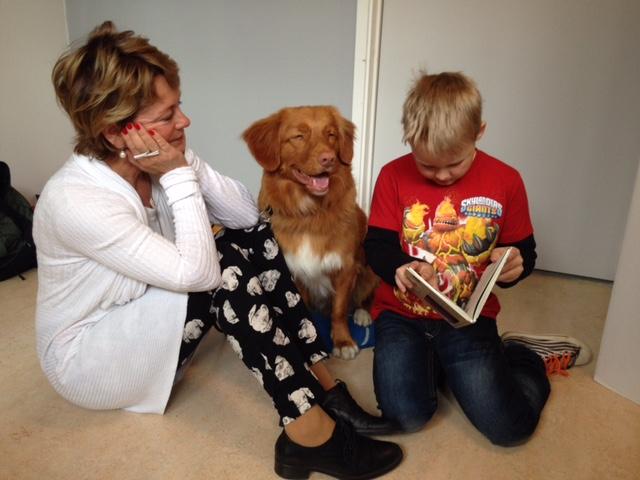 Sigtuna biblioteks samarbete med skolor är ett av flera goda exempel. Elever i årskurs tre med lässvårigheter får komma och läsa högt för de utbildade hundarna. Projektet har följts av forskare och resultatet är uppmuntrande, de elever som deltog i studien klarade sedan alla årskursens nationella prov i svenska. I Sverige ska ju ordning råda (!) så nu har Socialstyrelsen, Arbetsmiljöverket, Folkhälsoinstitutet och andra myndigheter börjat ta fram riktlinjer för hur djur ska användas i olika verksamheter… Och det är väl bra.