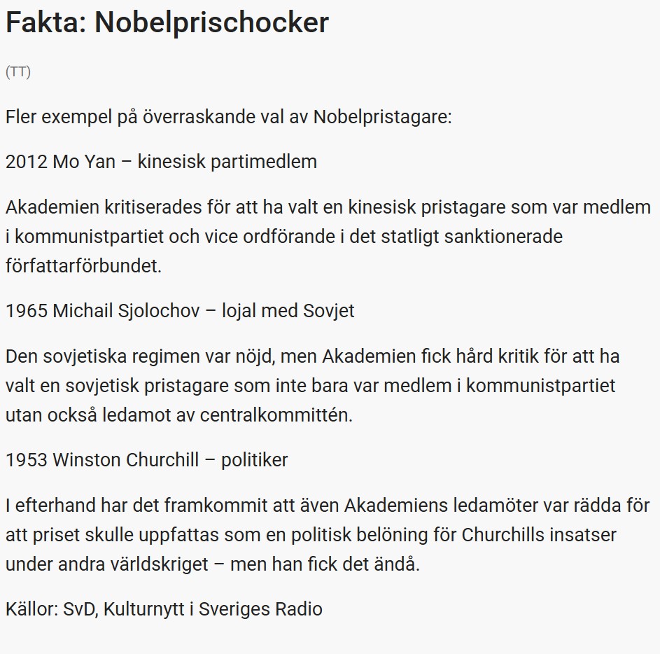 För ung, för okänd och för kontroversiell – Svenska Akademien väcker ofta starka reaktioner med sina val av Nobelpristagare i litteratur. Här är sju pristagare som slog världen med häpnad.