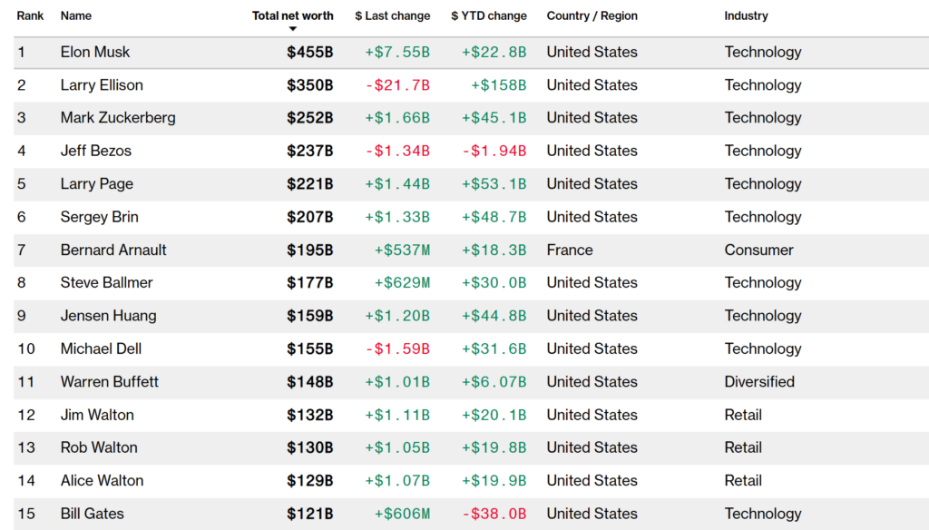Källa: Bloomberg Billionaires Index/18 oktober 2025