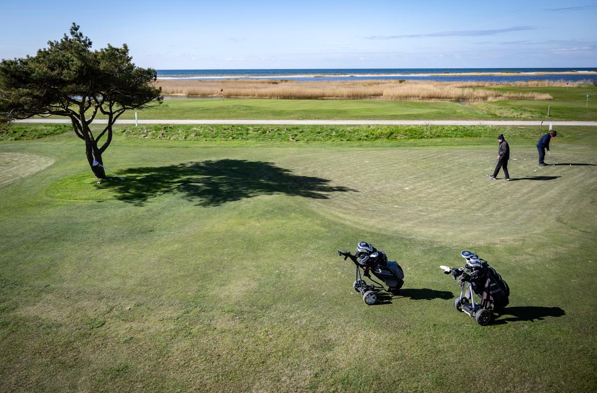 Det blåser friskt och just den här dagen lyser vårvärmen med sin frånvaro. Men det tycks inte bekymra de golfare som tagit sig till banan intill havet utanför Trelleborg – för att njuta av slående vacker utsikt och en runda med vännerna.