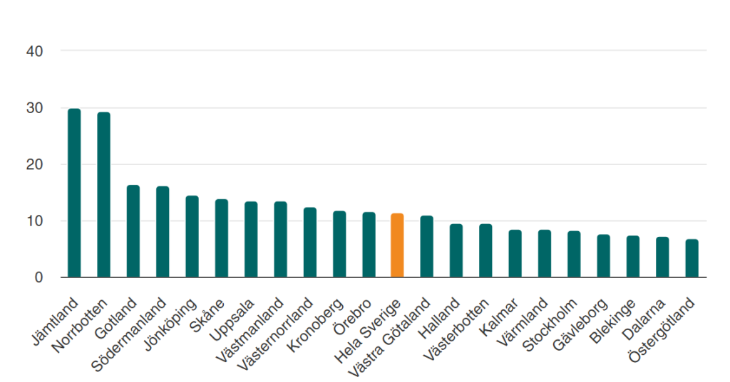 Under 2024 rapporterades flest Lex Sarah-anmälningar per invånare i Jämtlands och Norrbottens län, med 30,1 respektive 29,4 anmälningar per 100 000 invånare.
