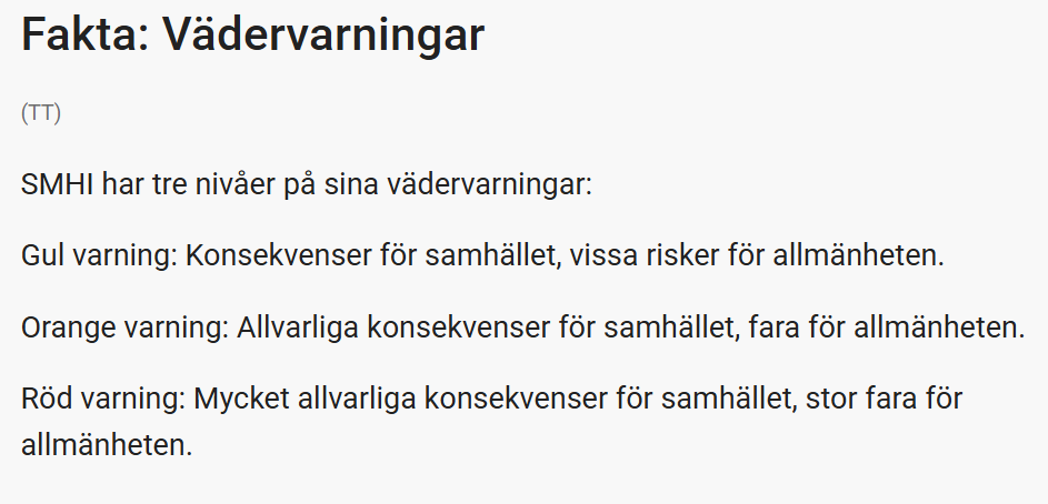 ”Det finns risk för nedfallna träd och grenar samt omkringflygande föremål”, skriver SMHI och uppmanar bland annat att förankra saker som studsmattor och trädgårdsmöbler.