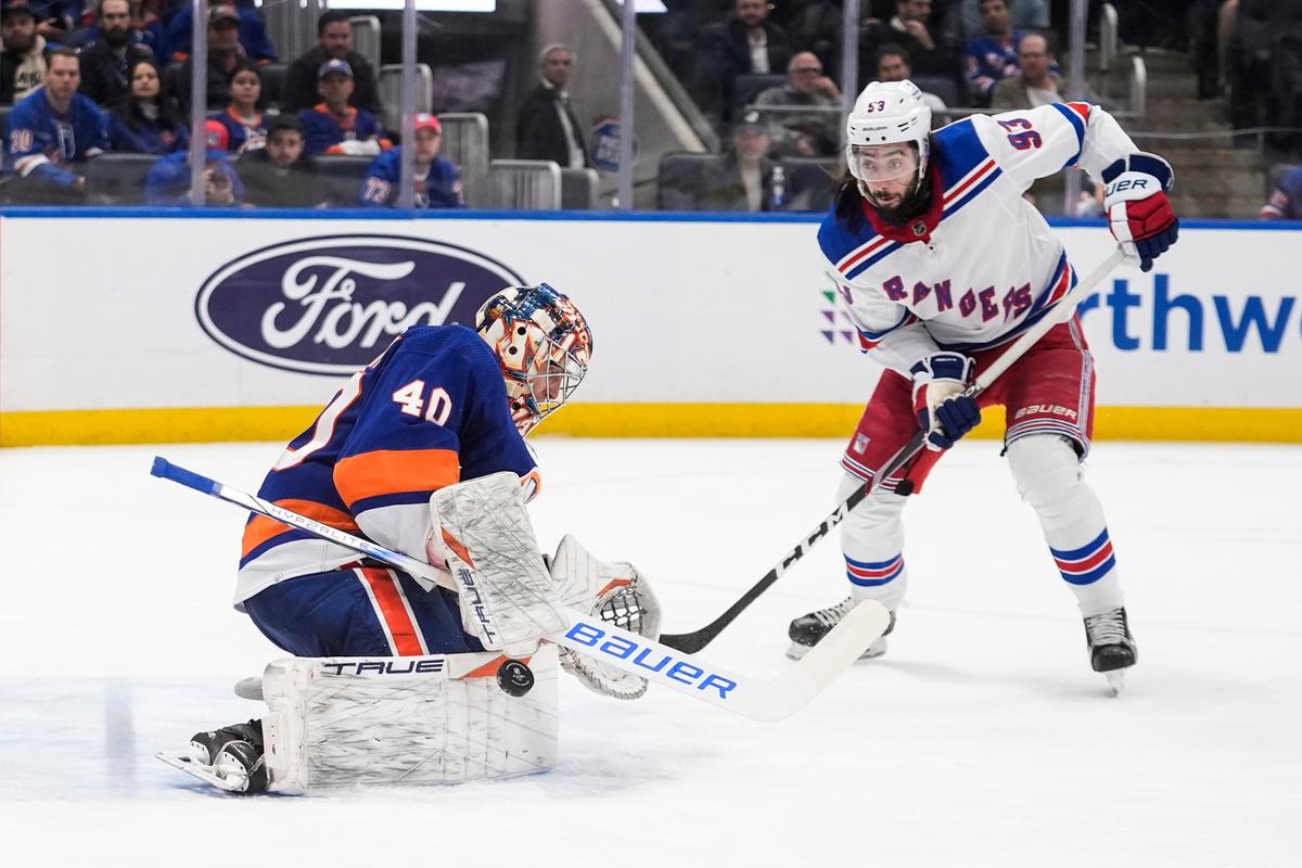 New York Rangers-stjärnan Mika Zibanejad tvingades lämna isen efter en sammanstötning med New York Islanders-backen Adam Pelech i NHL-ishockeyn.