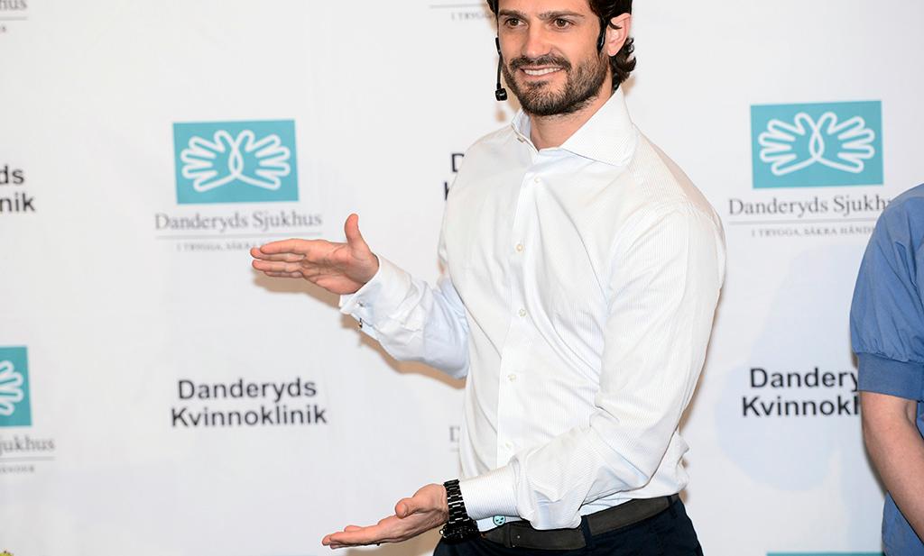 BILDSPEL. Prins Carl Philip visade upp för pressen ungefär hur stor hans nyfödda son var, under tisdagens presskonferens.
