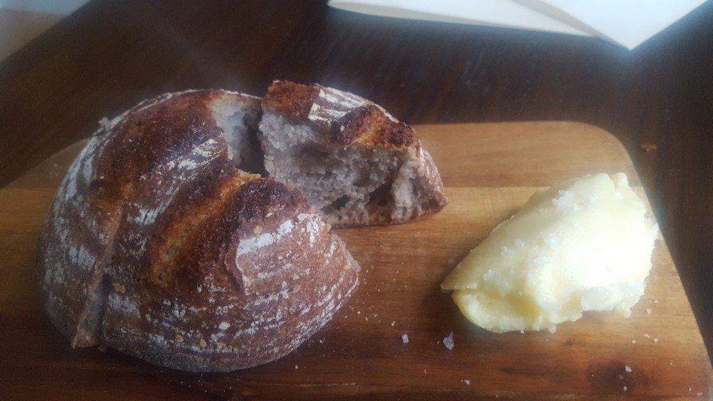 När det sen kommer in en bulle rykande hett, hembakt bröd med husets hemkärnade smör, blir man ännu gladare.