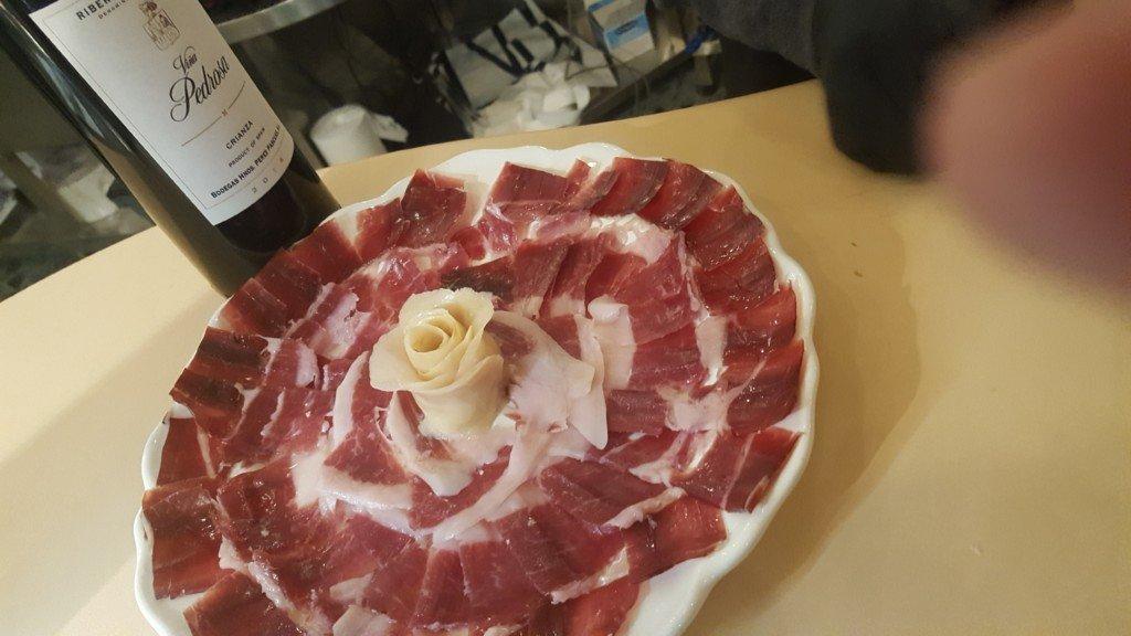 Mariano visar hur en äkta spanjor intar sin pata negra, med vidöppet gap, så att delikatessen hamnar långt bak i gommen, där smaklökarna sitter…: