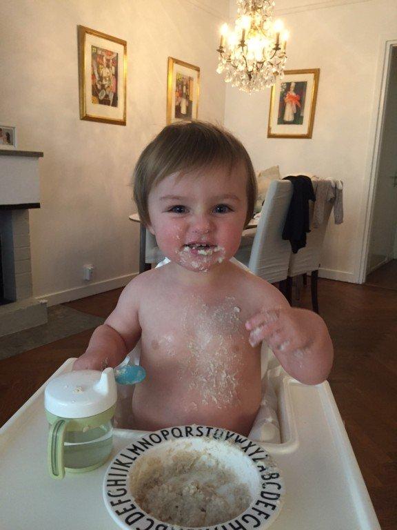 Det här är Penny. Penny äter. Då blir Pennys mamma glad och tar en bild. Farfar blir lika glad. För Pennys mat och alla andra bebisars är bland det viktigaste som finns. Det handlar bloggen om i morron!