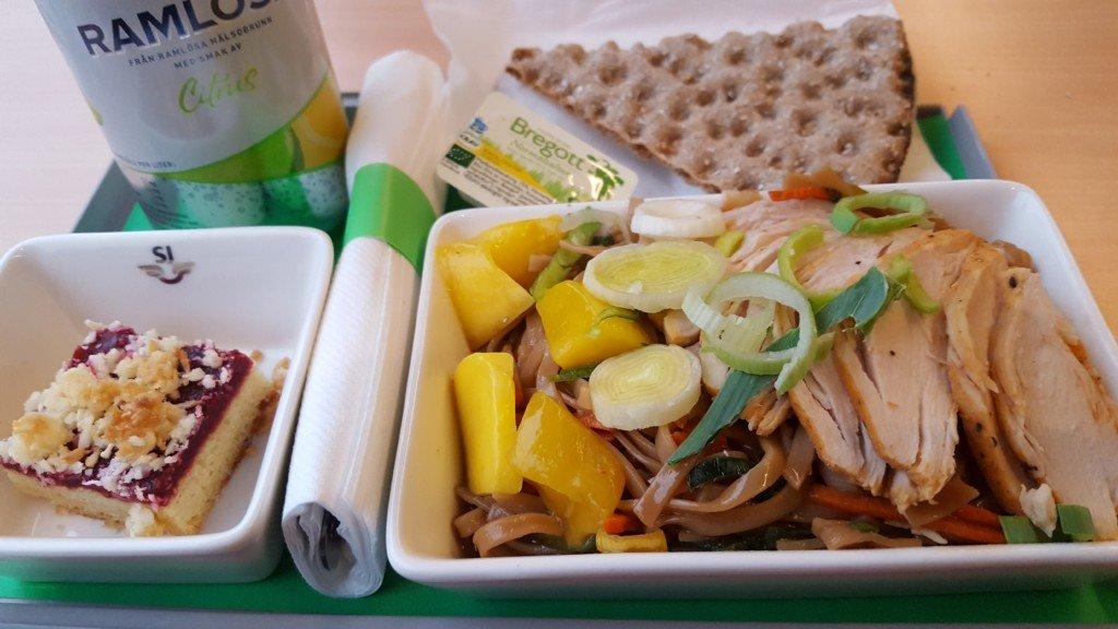 På tåget har jag fått två (!) hyfsade “dagens rätt” de senaste dagarna, chevalereskt framburna till sittplatsen av vänliga tågvärdar. Här är en: