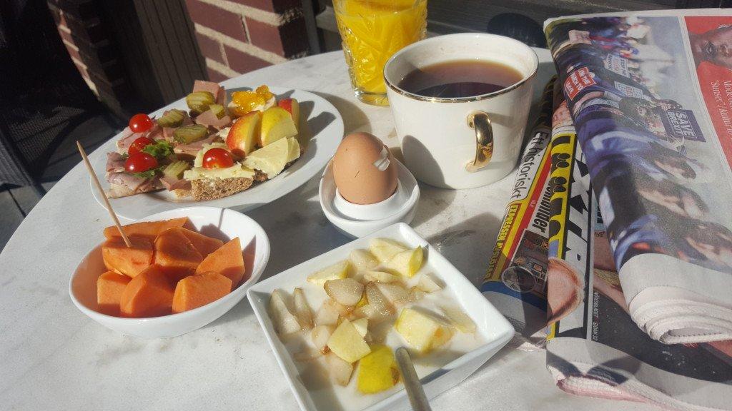 Hurra! Årets första utomhusfrukost redan den 22 mars! Med sol, 11 plusgrader och vindstilla. (Lyxigt sent, klockan 11; man är ju senior - men en rejäl frulle. Och lika viktigt: färska dagstidningar. På papper!) Nu börjar det...