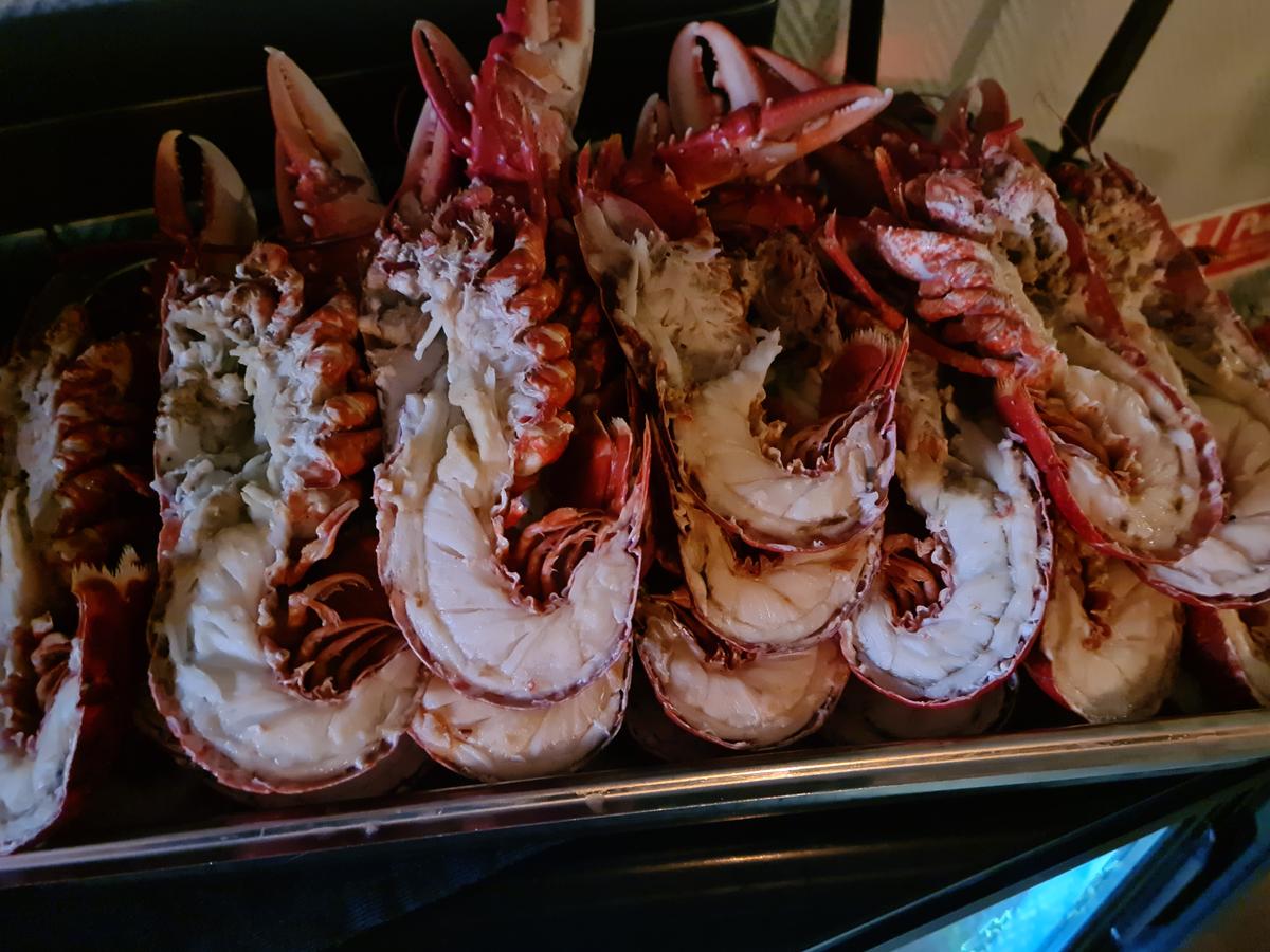 Hummern är ljummen och ljuvlig (ska ätas varm, säger Martin) och får sällskap av svala drycker, Captains Corner har fullständiga rättigheter.