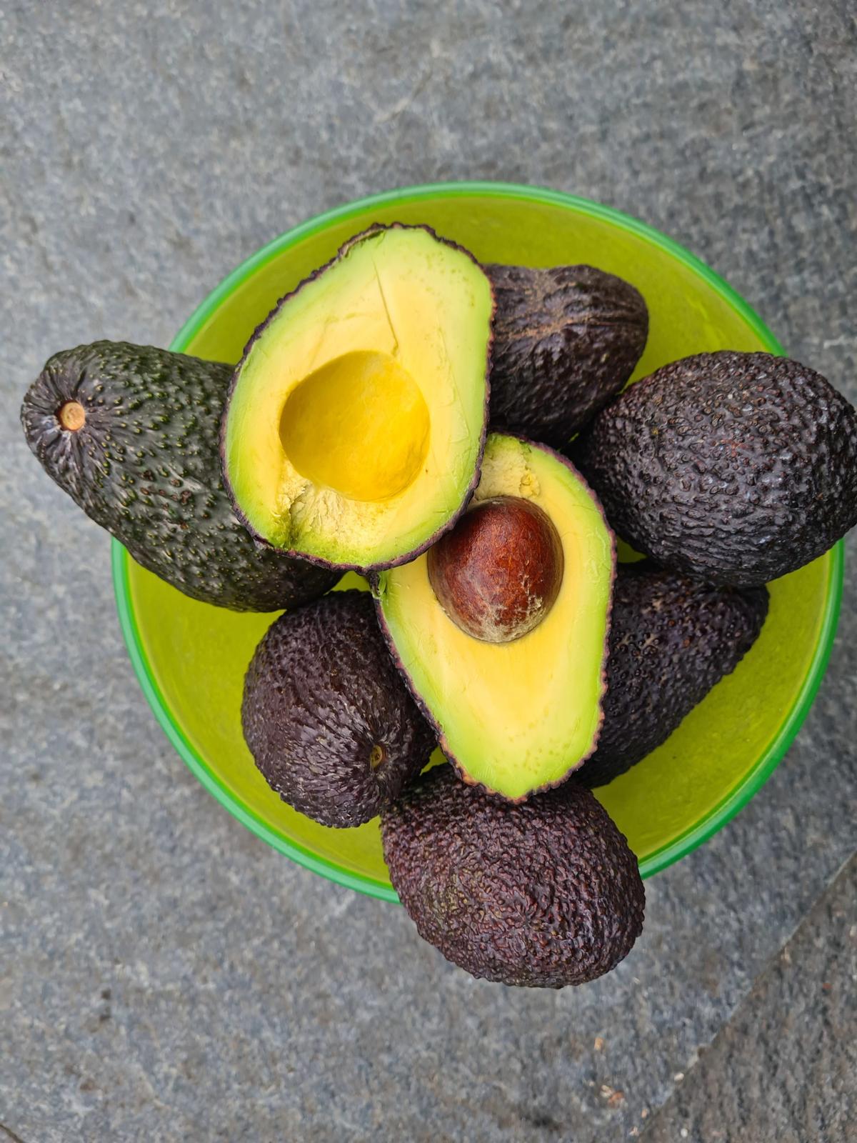 Frukterna (som egentligen är bär) är hårda och gröna när de kommer men mognar och mörknar på några dagar i rumstemperatur. När de är lagom mogna kan man lägga dem i kylskåp, så stannar mognaden av. Och man kan ha exklusiv avokadofest under längre tid!