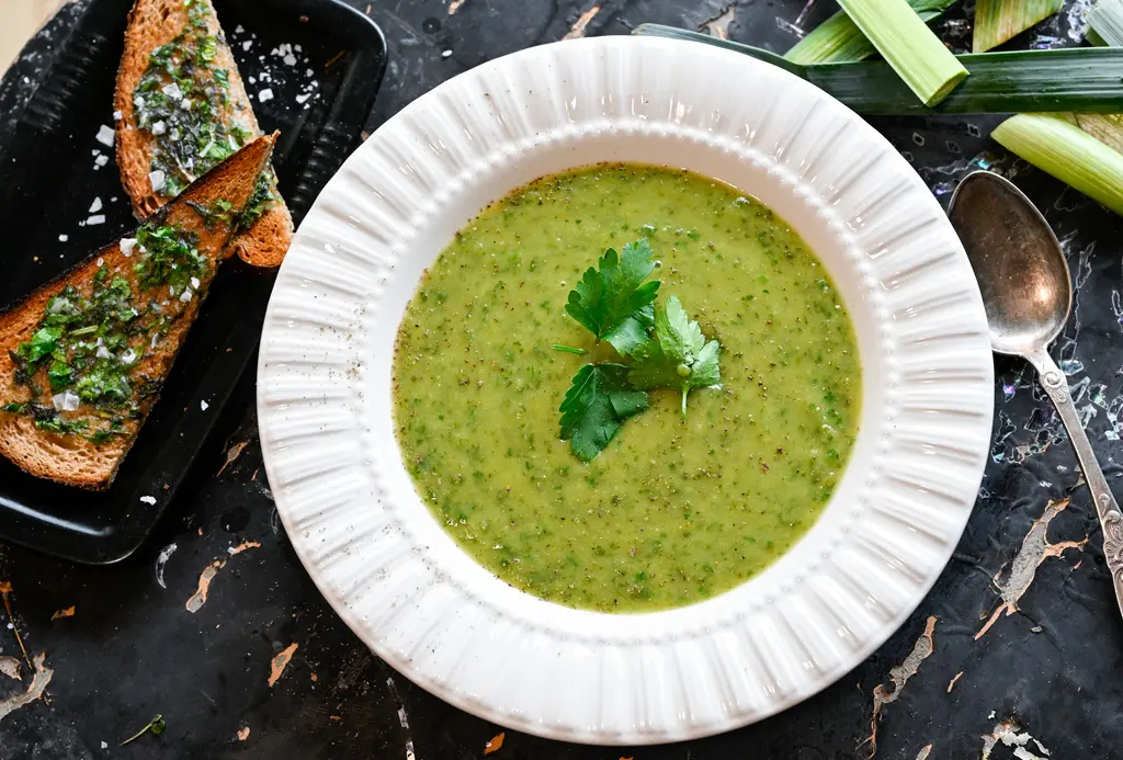 Recept: Purjolökssoppa med grönkål