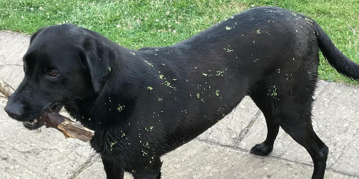Hundar kan vara behjälpliga på flera olika sätt med rätt träning och belöningar. Tre svarta labradorer plockar skräp för glatta livet på Gärdet i Stockholm.