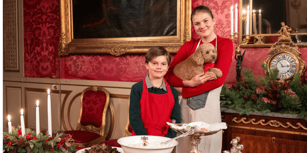 Prinsessan Estelle och Prins Oscar har förberett julens rätter. På menyn finns bland annat köttbullar, prinskorv, julgröt och knäck.