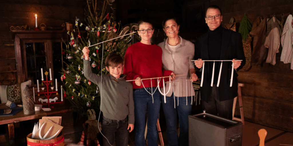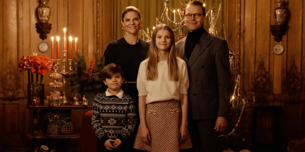 Julen 2022 delade Kungahuset en bild på Kronprinsessfamiljen i samband med att slottsmästaren Claes Carlsson förberedde slottet och dess salar för julen.