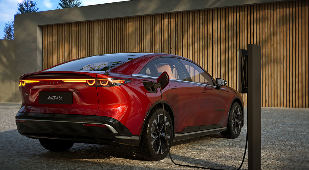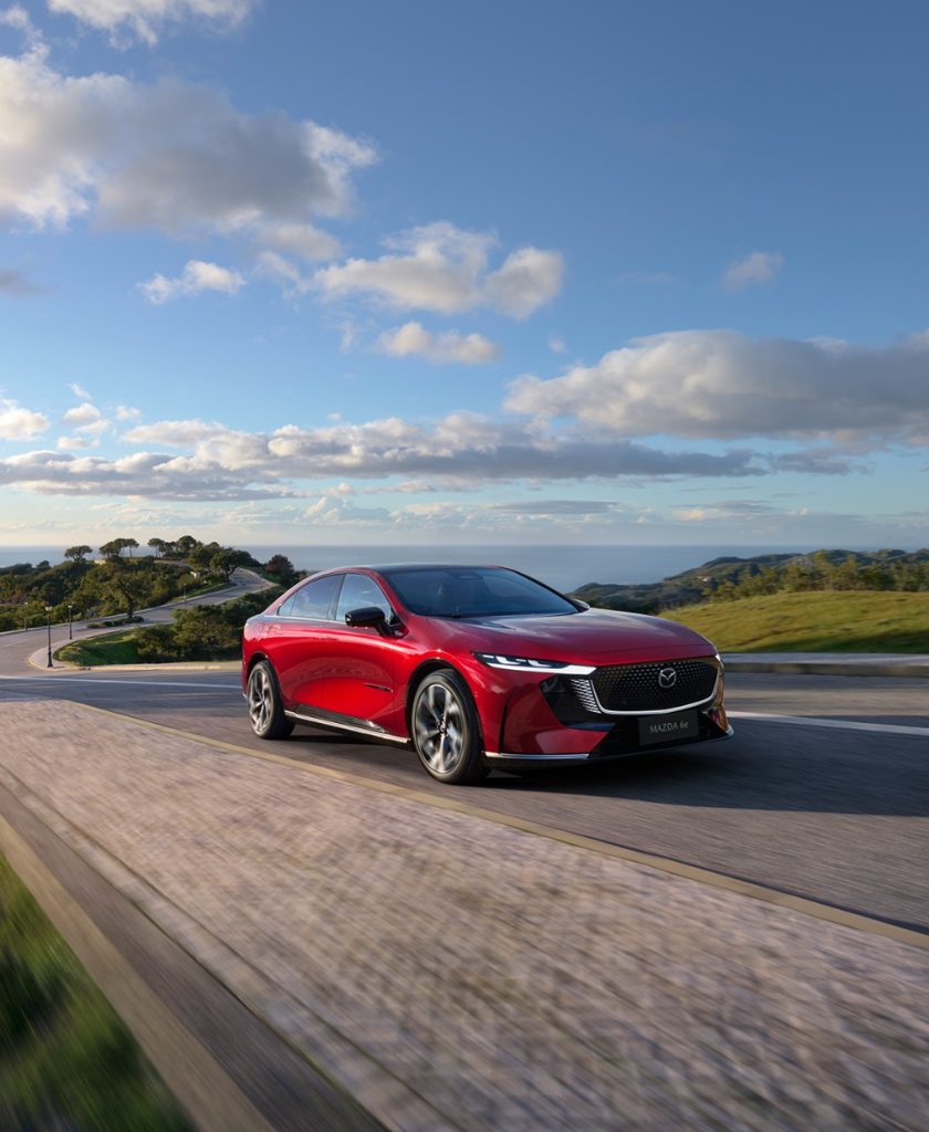 Mazda 6e, den eldrivna efterföljaren till den klassiska Mazda 6, hyllas för sin skulpturala, svepande linje och detaljrika körkaraktär.