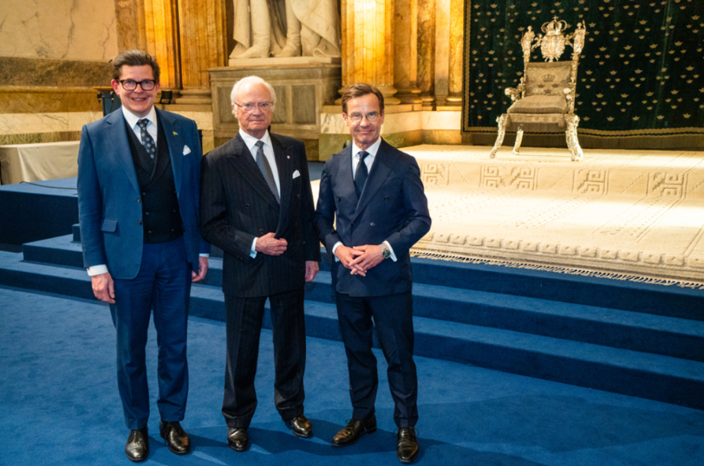Vid en mottagning på Kungliga slottet överlämnade riksdagens talman Andreas Norlén tillsammans med statsminister Ulf Kristersson en officiell gåva till kungen. Uppvaktningen sker med anledning av kungens kommande 80-årsdag.
