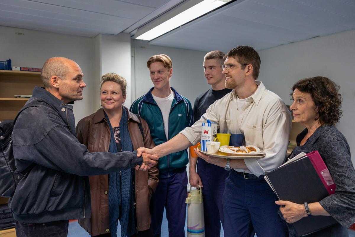 David Dencik, till vänster, spelar Lars Norén i SVT:s filmatisering av "Smärtpunkten", Elisabeth Åsbrinks bok om "7:3"-skandalen. Pressbild. (Foto: Niklas Maupoix)