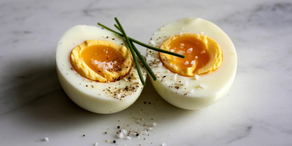 Vispa ihop 2 ägg, ½ dl vispgrädde, ½ krm salt och ½ krm peppar. Smält 1 msk smör på medelvärme i en stekpanna. Häll i äggsmeten och rör med en visp tills äggröran är krämig. Fördela på 10 ägghalvor. Toppa med finskuren gräslök.