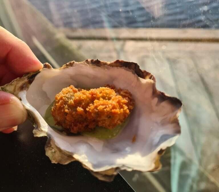 Bilden jag tog av den här blandade smakbomben gör inte rätten rättvisa (du fåt lita på min beskrivning!), så njut istället av åsynen av ett friterat ostron, som ackompanjerade den inledande drajan: