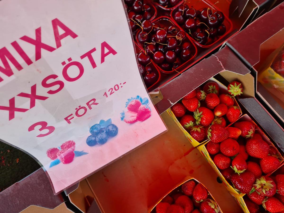 “Extra söta” står det alltid på en skylt hos flera av de jordgubbsförsäljare som vi brukar handla hos.