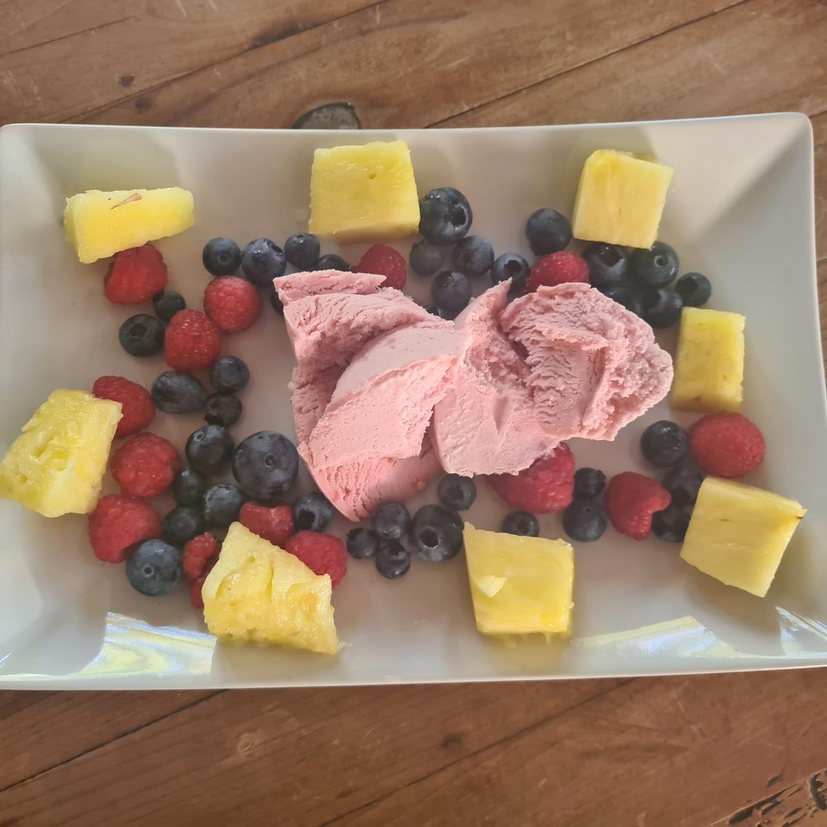 Glass och bär, samt lite ananas.
