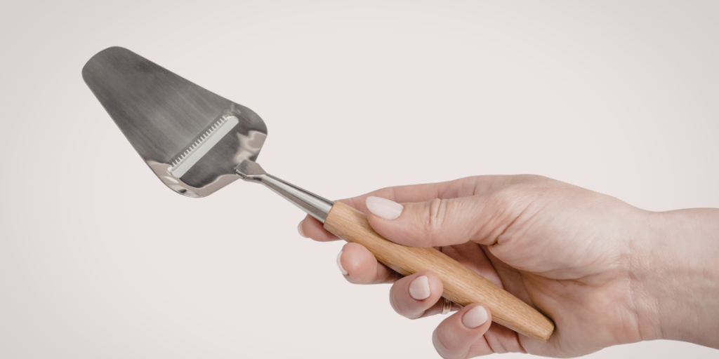 Om man inte har en osthyvel fungerar det lika bra att använda ett rivjärn eller en zestrivare för att dela smöret i mindre bitar.