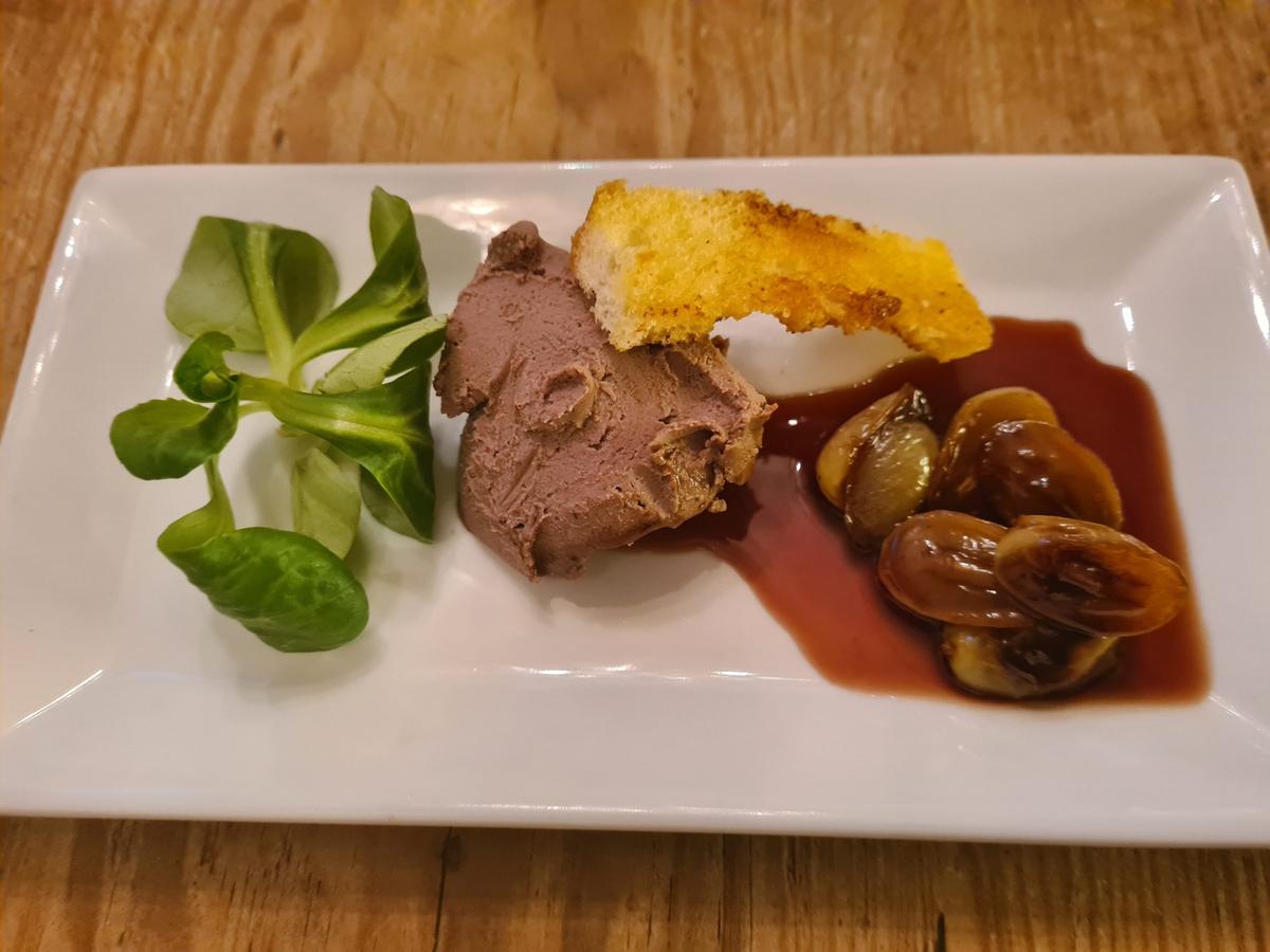 Kycklinglevermousse med glöggkokta druvor