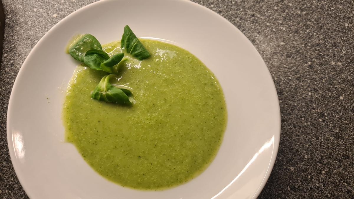 Mixade till en fräsch grön soppa på vad som fanns i kyl och frys i dag. Vilket var: