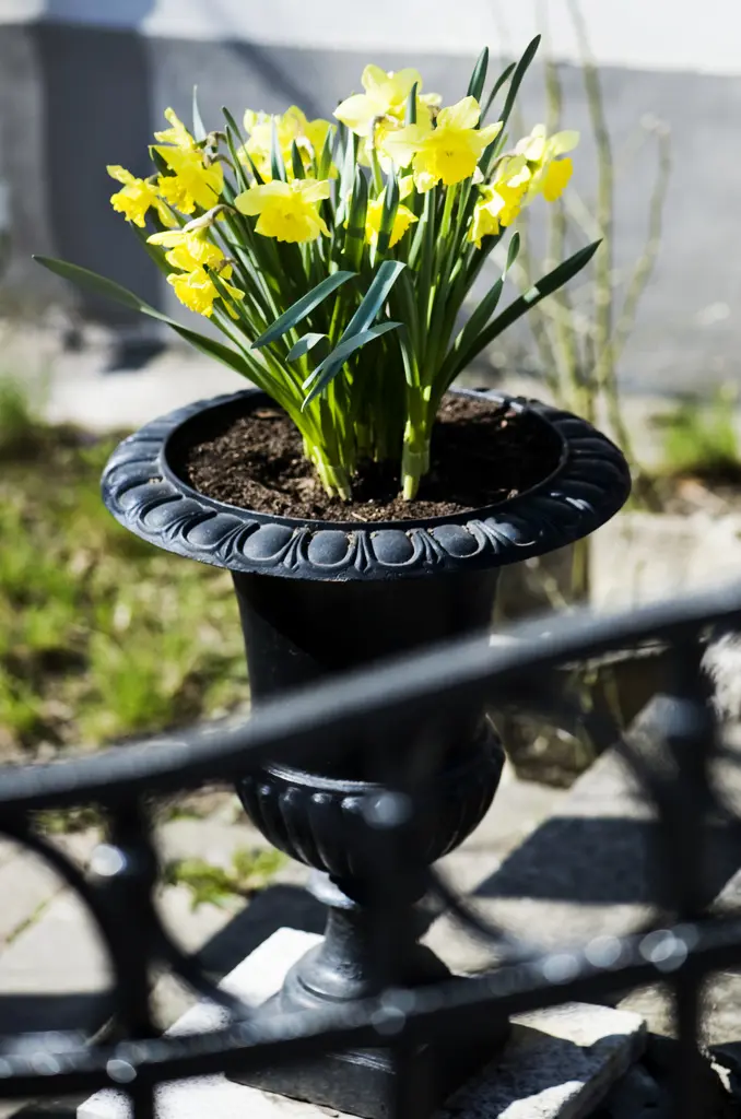 Påskliljor är robusta och kan stå ute under en lång tid, ända tills värmen kommer i maj.