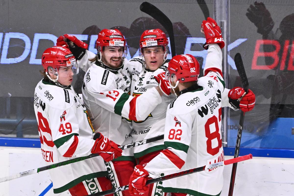 Mora vann stort – blåste Djurgården på finalplatsClaudio Bresciani/TTMoras Michael Brandsegg-Nygård (28), i mitten, jublar med lagkamraterna Noah Steen (49), Fabian Ilestedt (13) och Roope Laavainen (82).IshockeyTT