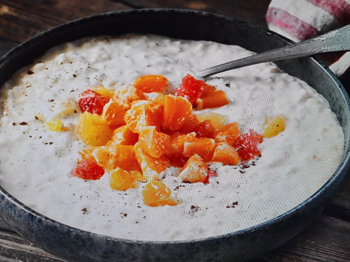 Receptet kan alltså inte vara enklare: risgrynsgröt (den färdigköpta går bra), socker, vanilj och apelsin. Plus kanske nötter.