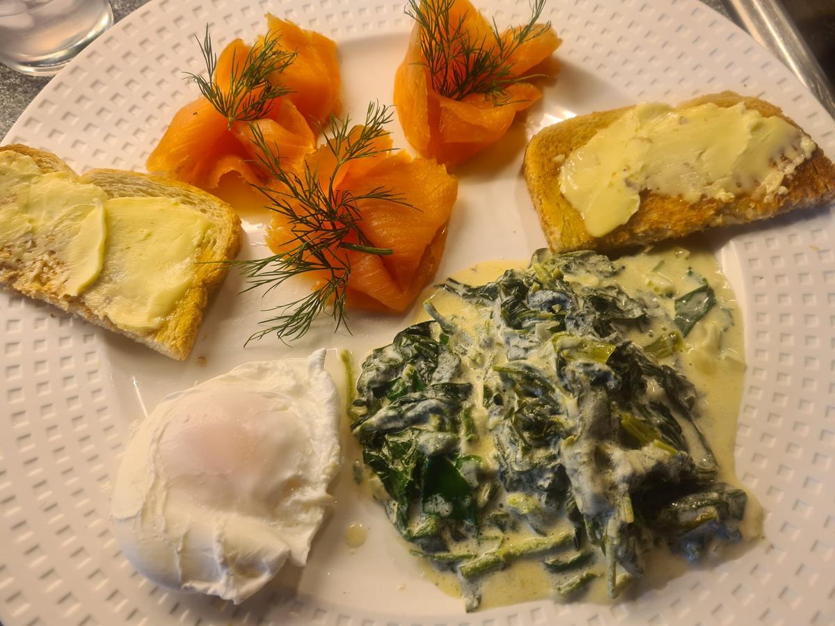 Rökt lax, pocherat ägg - och gräddstuvat ogräs!