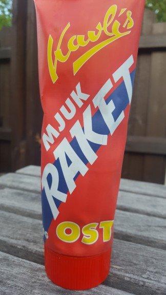 Först nu upptäckte jag det: en jämnårig gammal kompis är tillbaka på banan: den klassiska Raketosten! Blev alldeles rörd. Trots att det faktiskt inte är riktigt samma ost som den man älskade som barn.