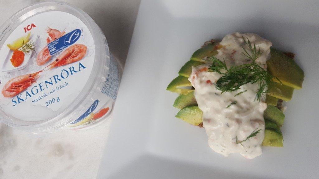 Och det kan man förstås göra med den här röran. Men det är också gott att lägga skivad avokado på rågbröd och sen toppa med röran: