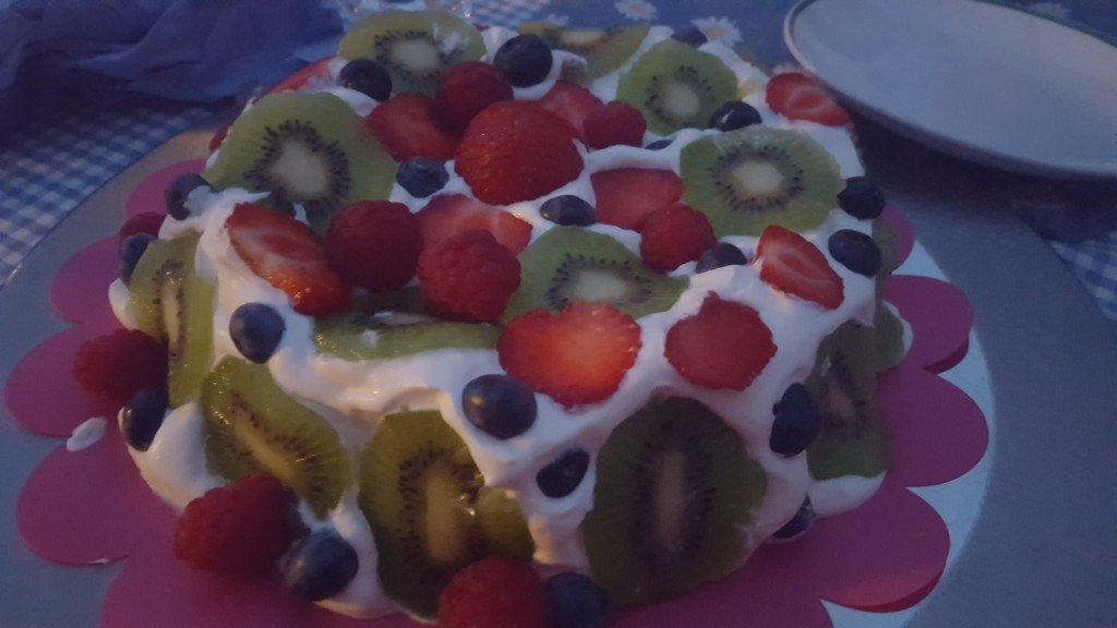 När den är kall dekorerar du den med vispad grädde och frukt eller bär.