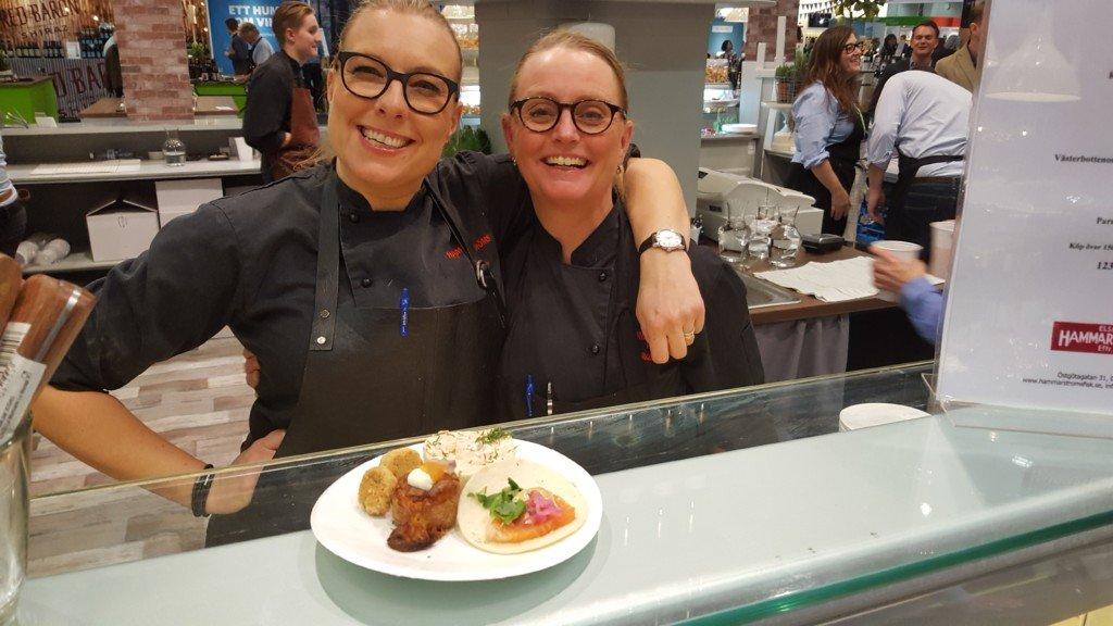Själv började jag med en liten delikatesstallrik från den lilla söderboden Hammarströms fisk, som de charmiga handlarna Pernilla (t.v.) och Ullis hade komponerat: