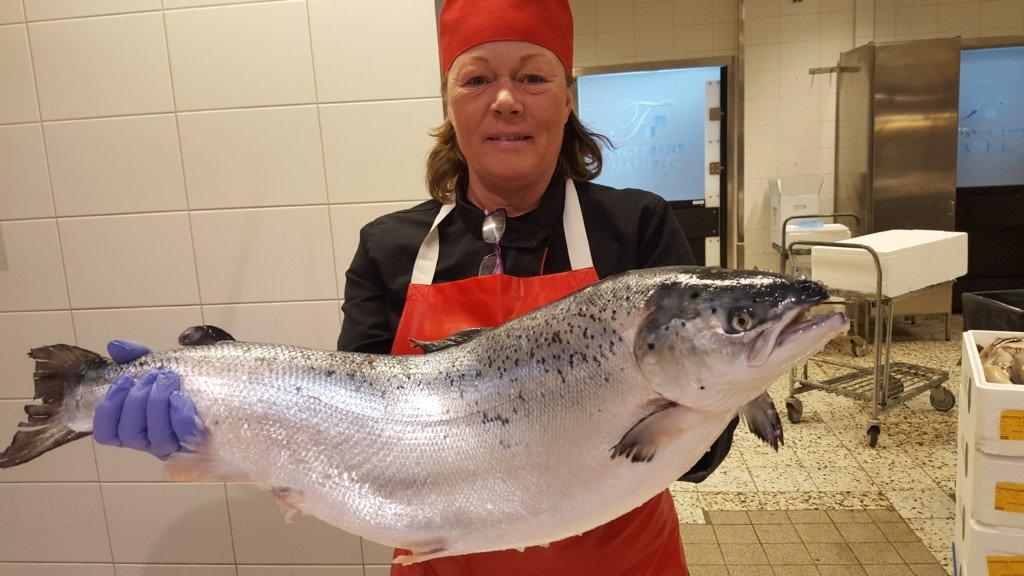 Underbar fisk, till fest och vardag! Gunilla Häggman på Flygfyren i Norrtälje med en praktlax.
