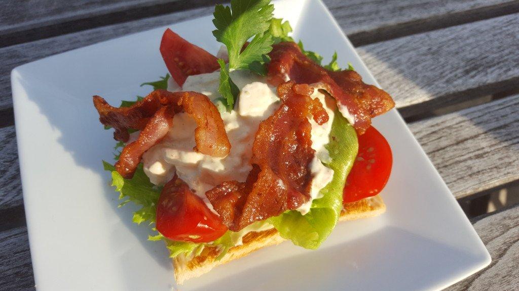 I dag fanns det några bitar rensad kyckling och lite kokt sparris i kylen. Det blev till en god röra, danskarna kallar den hönsesalat. Med betoning på sista stavelsen (alltså ungefär “hönsesälää:´t”), glöm inte det, annars förstår de inte alls.
