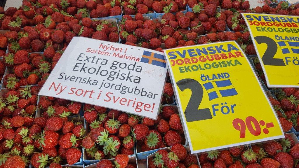 Och här, det är Norrtälje. Dit har ekologiska jordgubbar hittat hela vägen från Öland. Det var på tiden! Och extra välkommet, eftersom jordgubbsplantor normalt lär vara generöst besprutade.