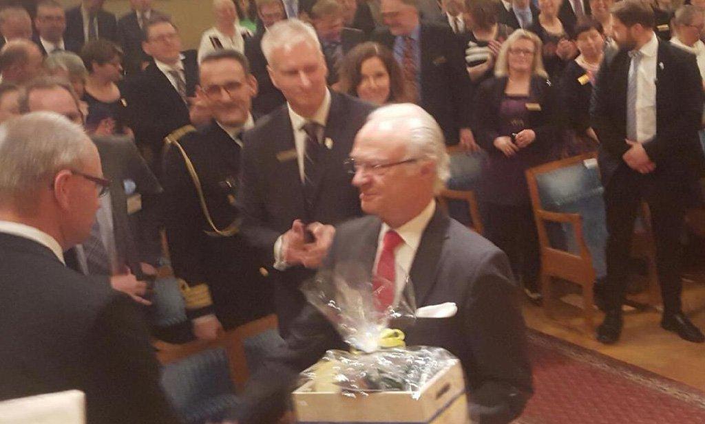 37 skinande guldmedaljer delades ut av kung Carl Gustaf i dag till svenska mjölkbönder som levererat perfekt mjölk utan någon skavank i 23 år. Kungen sköter den här sysslan varje år- med stor entusiasm, vilket härmed intygas av en som var med på ett hörn.