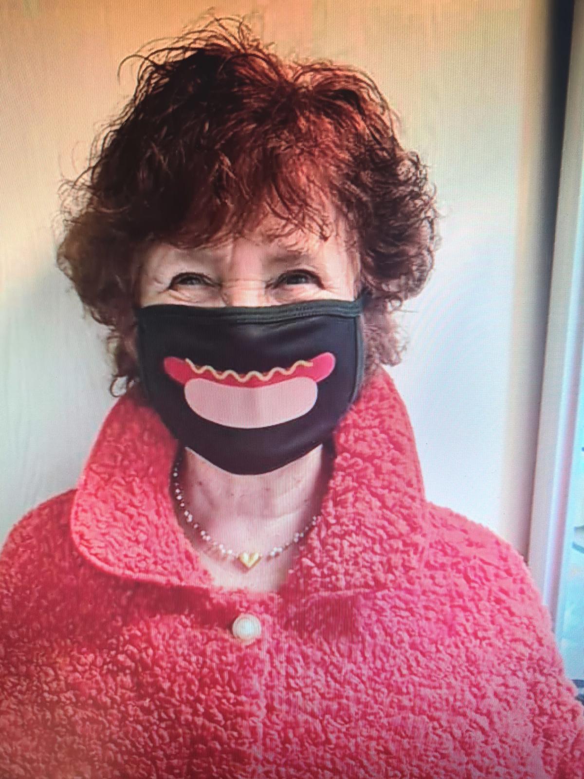 En nackdel med munskydd är att man inte ser om det finns ett leende bakom tygbiten. Här slipper man undra: den uppåtvinklade korven ger intryck av ett evigt, glatt smajl: