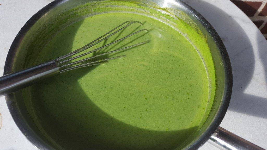 - Sila av spadet och spara det. Hacka den gröna massan ganska fint. Mixa spad, grönsaker, en matsked mjöl, en klick smör och eventuellt ett par matskedar crème fraiche med stavmixer eller – bäst – i blender. Koka upp, smaka av om det behövs mer salt och peppar – och nu har du en dundersoppa!