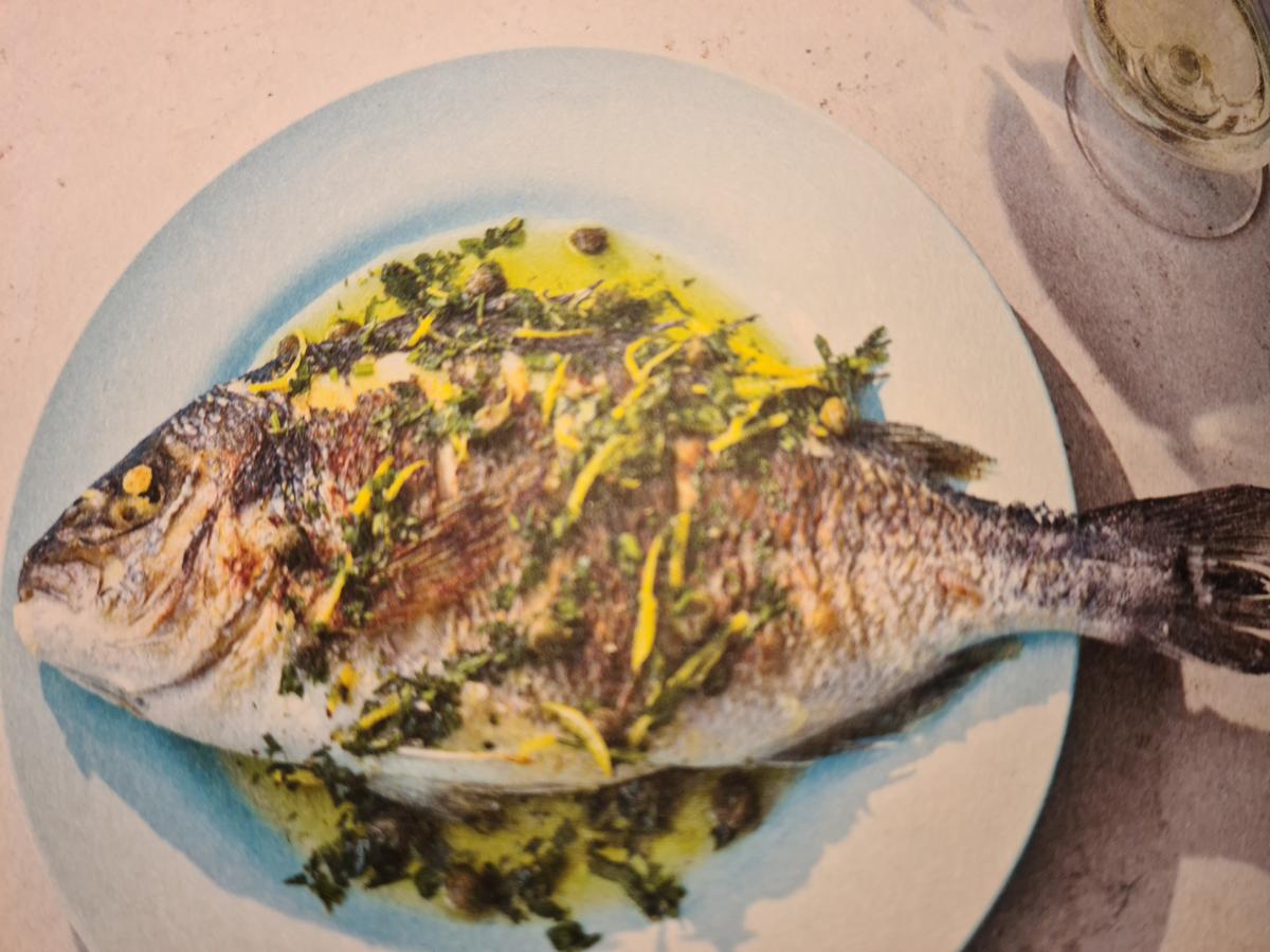 Blanda citronsaft, citronskal, 1 dl olivolja, persilja, oregano, kapris, salt och peppar till en dressing. Toppa fisken med dressingen vid servering.