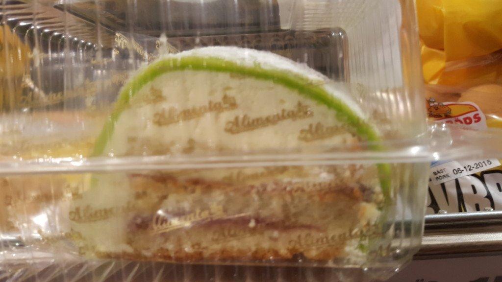 Sockerkaka till förbannelse (även direkt under marsipanen) och ungefär en (1) centimeter grädde. Usch.