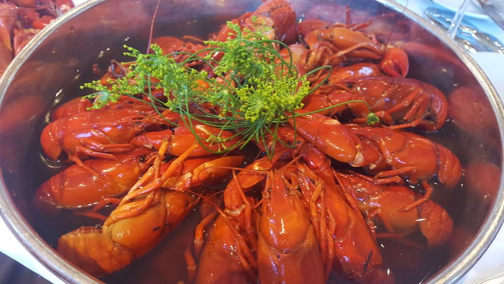 Generöst med vätternkräftor var det. Samt starka ostar och en ost- och purjolökspaj. Gissa vem som satt och åt längst, ända tills kaffet var i antågande…