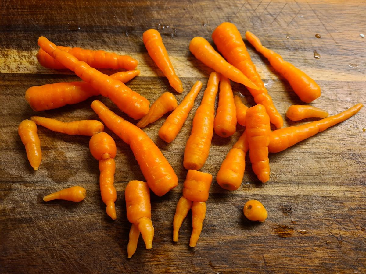 Fem månaders jobb, och nu har jag skördat: två hekto morötter, den största som ett pekfinger. Får nog avboka det där torgståndet jag hyrt för att sälja grönsaker...