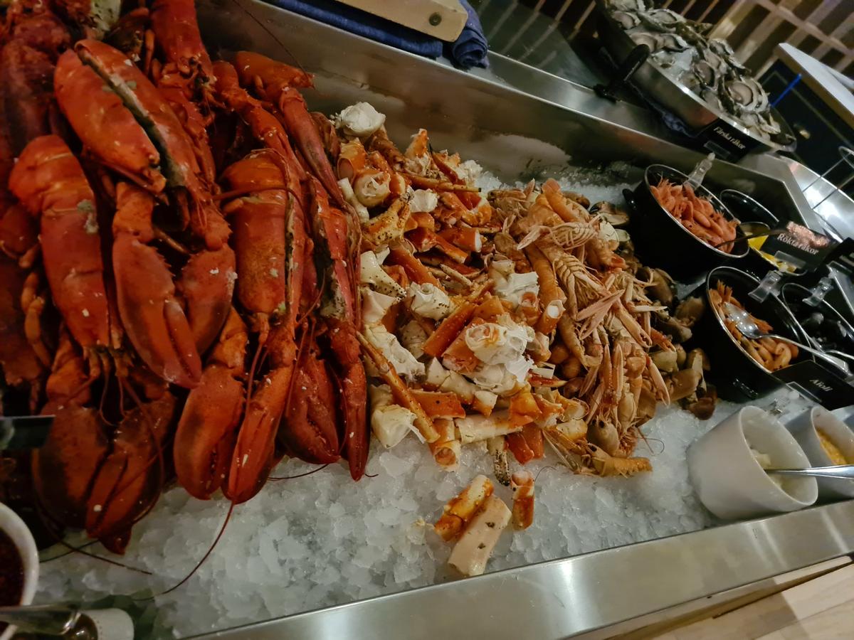 Skaldjuren läggs upp på stora fat av kockarna bakom disken. Man får inte peta på maten själv. Covid, covid, covid, som Trump brukar säga. Men man kan alltså backa obegränsat antal gånger.