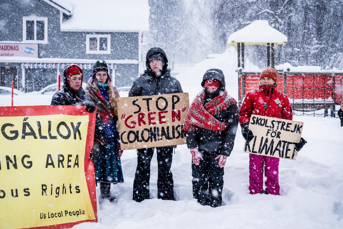 Det samlades omkring 13 personer i demonstrationen, med personer från ungdomsorganisationen Sáminuorra och Fridays for future samt skådespelarna Lene Cecilie Sparrock och Kristine Solberg från Giron Sámi Teáhter.